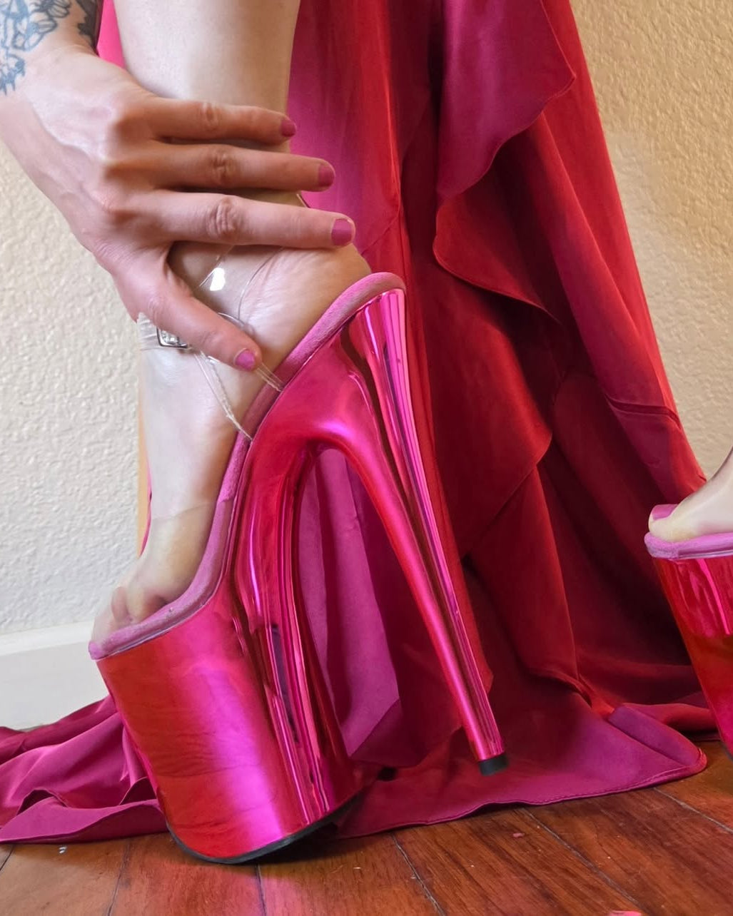 Customize your essential transparent heels with over 33 insole colors and discover the perfect shade to complete your must-have pair.